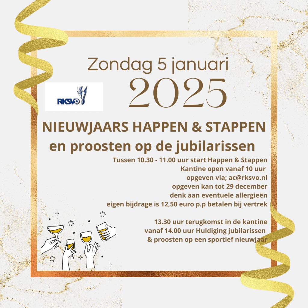 Op zondag 5 januari 2025 heeft de activiteitencommissie de tweede editie van het Happen en Stappen georganiseerd. Samen met in totaal 54 wandelaars kunnen we terug kijken op een leuke activiteit die zeker voor herhaling vatbaar is!